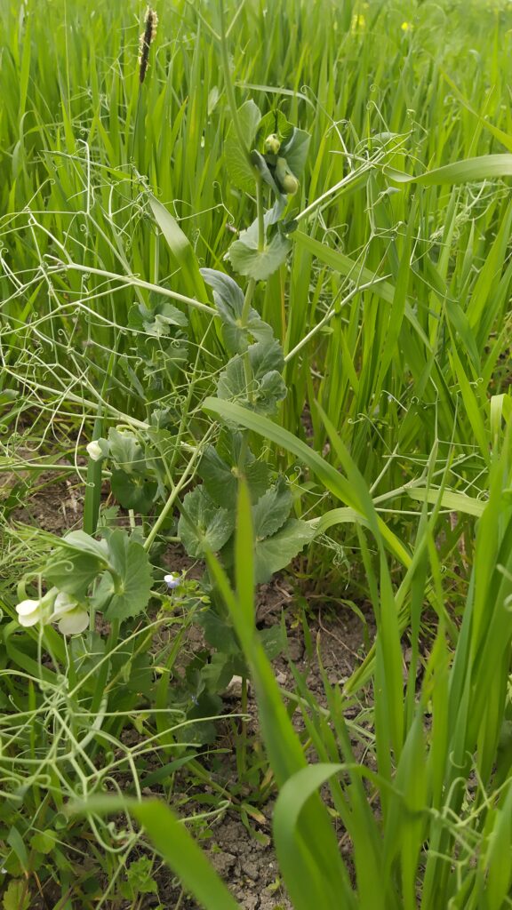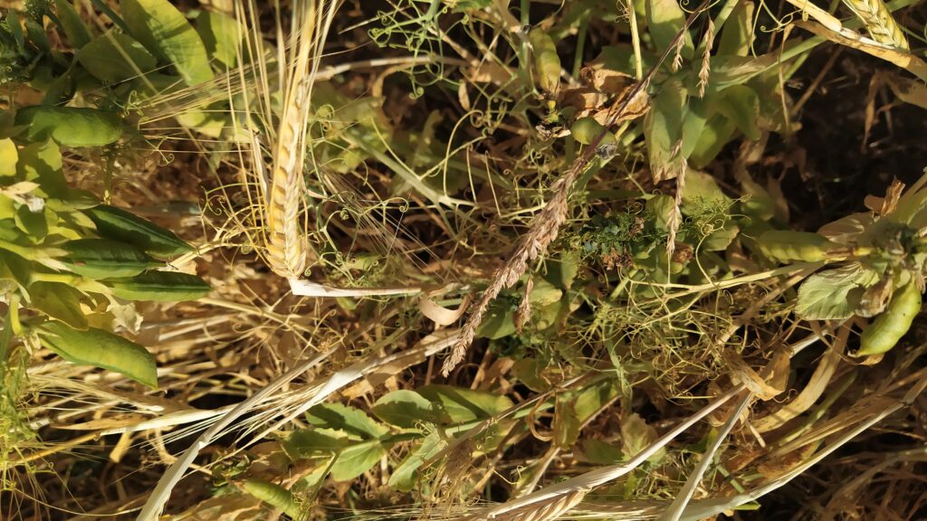 Above: close-up photo of wheat and pea intercropped.